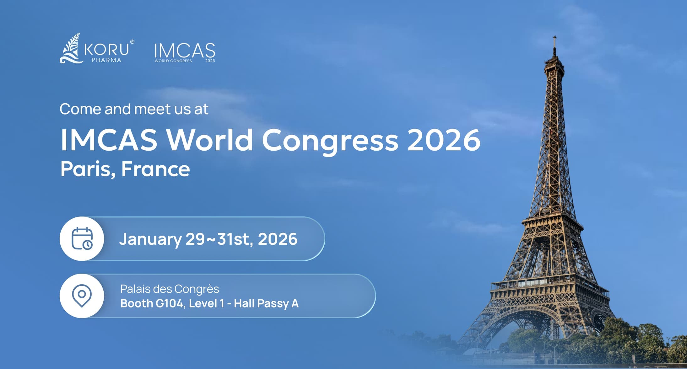 Koru Pharma is pleased to announce its participation in the IMCAS World Congress 2026, one of the world’s leading international events in aesthetic medicine, dermatology, and plastic surgery. The congress will take place from January 29 to 31, 2026, at the Palais des Congrès de Paris, bringing together global experts, innovators, and industry leaders.