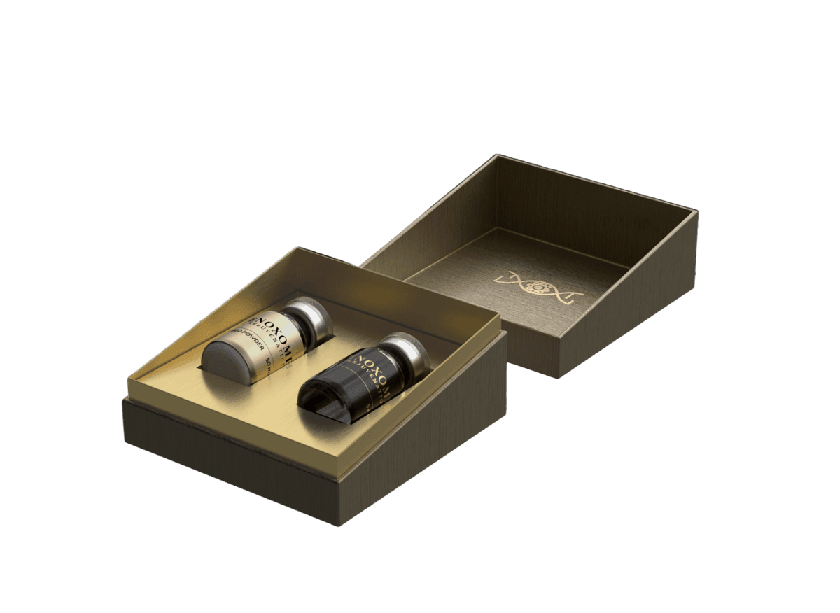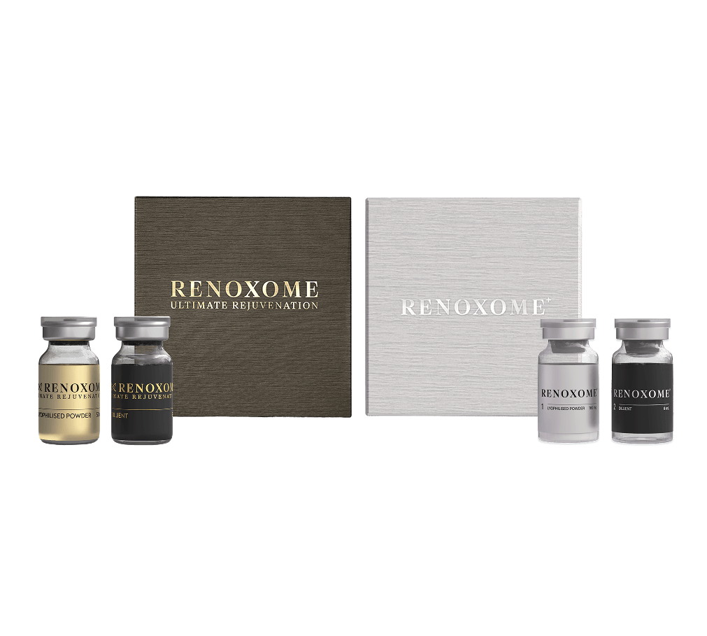 Renoxome provides a rejuvenating experience, enhancing the skin’s vigour and appearance with the advanced technology of exosomes. This innovative approach aims to harness the natural regenerative capabilities of exosomes to promote healthier, more youthful skin, embodying the concept of renovation at a cellular level. Renoxome utilises exosomes that are biocompatible, allowing for deep skin absorption and maximum effectiveness. With billions of exosomes per product, it enhances collagen synthesis and promotes skin regeneration, elasticity, and moisture retention by boosting ECM components and filaggrin production.