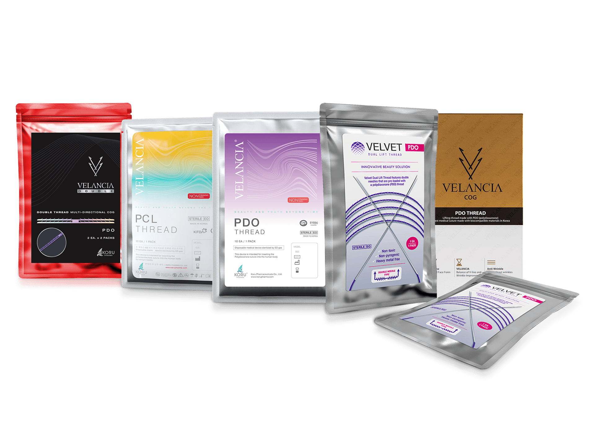 Koru Pharma presents a comprehensive selection of Velancia® lifting threads, designed to offer targeted, non-invasive aesthetic solutions for both facial and body rejuvenation. Our diverse range includes Mono, Screw, Twin, Twin Screw, Double Screw, Advanced Screw, Mesh, Broom, Tag Ring, Cog, Press Cog, and Molding Cog threads. Crafted from high-quality materials like PDO, PLLA, PCL, and PLACL, these threads are ideal for lifting, tightening, and contouring various areas of the face and body. Whether you're addressing sagging skin, enhancing facial contours, or targeting body areas like the abdomen, thighs, or buttocks, Velancia® provides safe, effective, and customizable treatments for optimal aesthetic results.